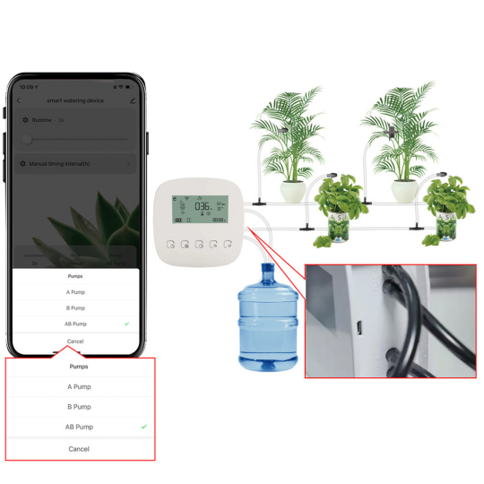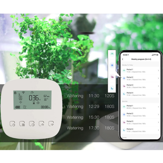 Połączenie z aplikacją Tuya umożliwia Ci sterowanie pompą z dowolnego miejsca na ziemi. Intuicyjna obsługa aplikacji daje Ci kontrolę nad stanem nawodnienia Twoich roślin. To w aplikacji Tuya ustawisz harmonogramy i scenariusze.